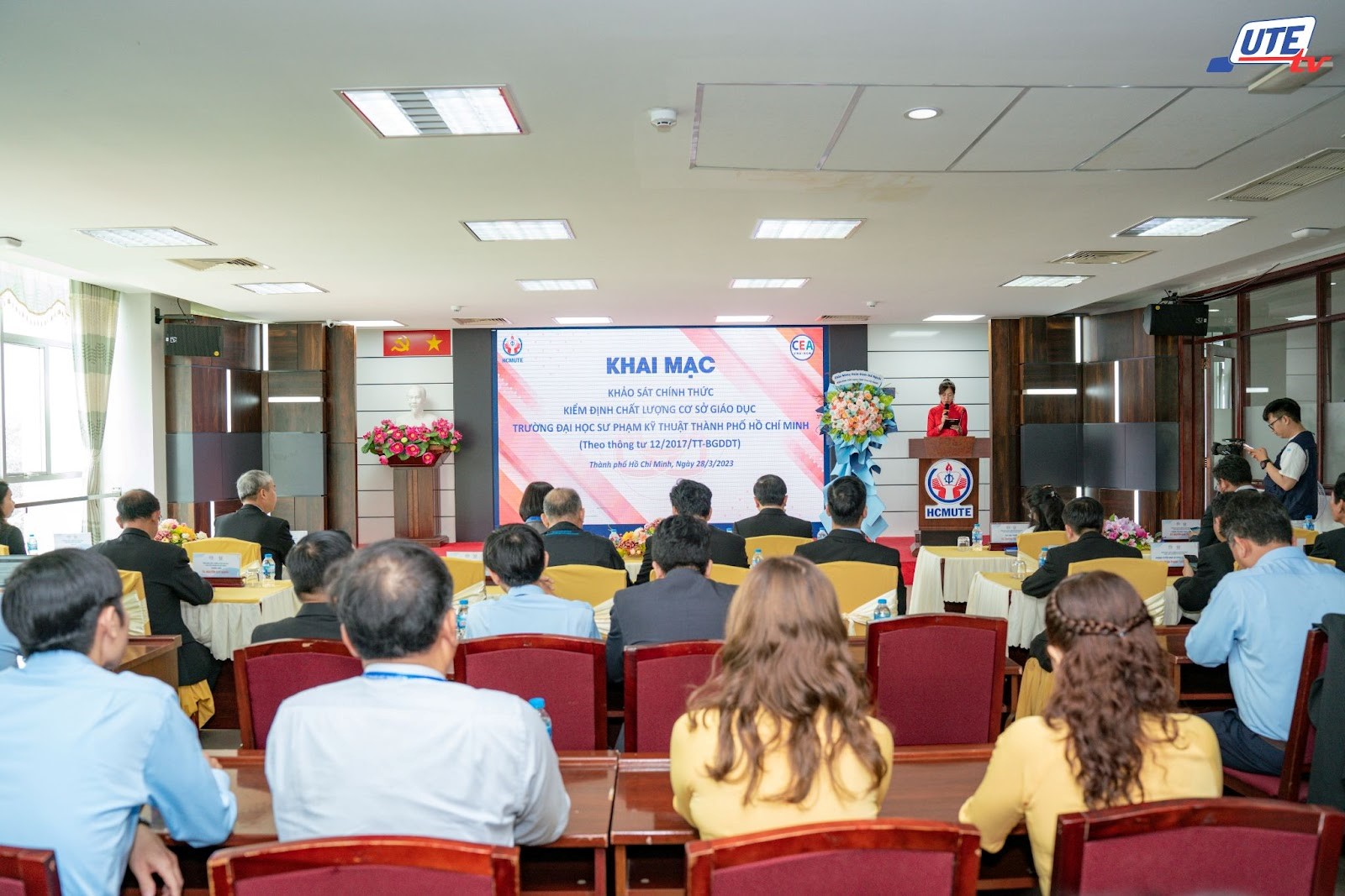 Sáng ngày 28/03/2023, tại Phòng họp I – Trường Đại học Sư phạm Kỹ thuật TP.HCM (HCMUTE) đã diễn ra Lễ khai mạc chương trình khảo sát chính thức phục vụ đánh giá ngoài kiểm định chất lượng cấp cơ sở giáo dục (theo Thông tư 12/2017/TT-BGDĐT ngày 19/5/2017 của Bộ Giáo dục và Đào tạo) với Đoàn đánh giá ngoài đến từ Trung tâm Kiểm định chất lượng giáo dục, Đại học Quốc gia TP.HCM (ĐHQG-HCM).
